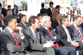 De izquierda a derecha, el Superintendente de la SEC, Luis Ávila; el Superintendente de Bancos e Instituciones Financieras, Raphael Bergoeing; el Superintendente de Valores y Seguros, Fernando Coloma; el Ministro de Economía, Pablo Longueira; y el Director Nacional del SERNAC, Juan Antonio Peribonio, durante la inauguración de la Feria del Consumidor.