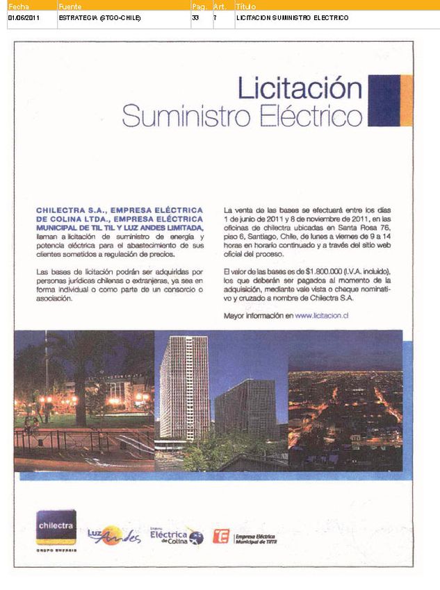 De acuerdo con la Ley Nº 20.018, publicada el 19 de mayo de 2005, las concesionarias de servicio público de distribución deben licitar el suministro necesario para abastecer los consumos de los clientes sometidos a regulación de precios ubicados en su zona de concesión, de manera de cumplir con su obligación de disponer permanentemente del suministrode energía que, sumado a la capacidad propia de generación, les permita satisfacer el total del consumo proyectado de sus consumidores regulados para, a lo menos, los próximos tresaños.