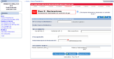¿ Cómo ingresar declaraciones relacionadas con suministro de gas ?
