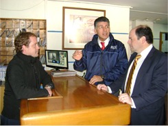 El Superintendente de la SEC, Luis Ávila (al centro), junto al Ministro de Energía, Rodrigo Álvarez (a la derecha), le explican al Conserje la importancia de que informe a la Comunidad del edificio, que se encuentran con su Sello Verde vencido, por lo que deben organizarse para renovar, a la brevedad, dicho Sello y así tener instalaciones gas más seguras.