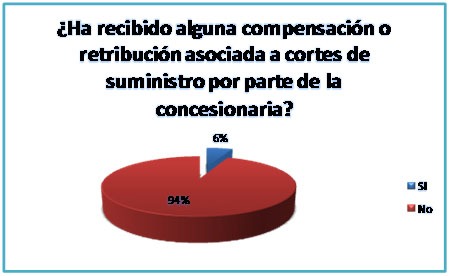 Es importante consignar que de acuerdo a la Encuesta, solo un 6% de la muestra asegura haber recibido algún tipo de Compensación, mientras que la información entregada por las empresas, entre diciembre 2011 y noviembre 2012, indica que se compensó a 1, 6 millones de puntos de suministro, lo que equivale a un total de $1 mil 429 millones 635 mil 040.