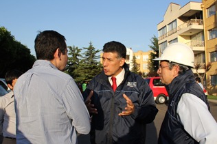El Superintendente de la SEC, Luis Ávila Bravo (al centro) estuvo personalmente dirigiendo las acciones del equipo investigador en terreno y respondiendo las consultas de los preocupados vecinos.