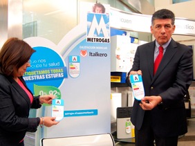 La Seremi de Salud, Rosa Oyarce, junto al Superintendente de la SEC, Luis Ávila, muestran el etiquetado, que tiene como objetivo, informar a la ciudadanía de cuales estufas son las que más contaminan y cuales las que son más amigables con el medio ambiente.